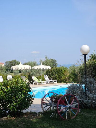 Meals are served on the spacious terrace in front of the house, where a gentle breeze can be enjoyed even in the summer. Il Risveglio treats guests to two daily buffets and snacks featuring traditional Tuscan specialties made from seasonal, organic, and locally sourced (0km!) ingredients, with vegetarian and vegan options. A picnic in the olive grove is also planned—truly the cherry on top!